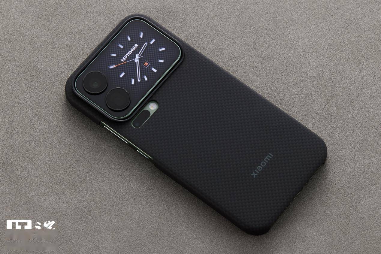 同时IT之家还收到配套的小米龙鳞纤维磁吸保护壳,表面拥有交叉网格纹路,手感细腻,并且戴上后妙享背屏会变成时钟功能。